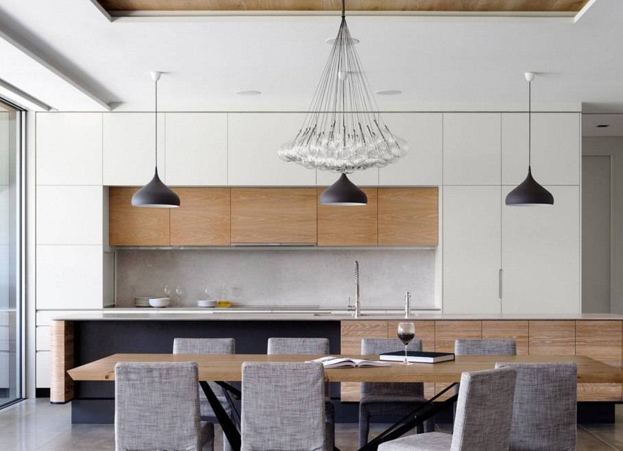 Выбрать подходящий тип светильника поможет стиль интерьера и размеры кухни. Желательно, чтобы осветительные приборы соответствовали обстановке, были сделаны из одного материала и не отличались по цвету. Похожие абажуры найдутся у разных производителей.