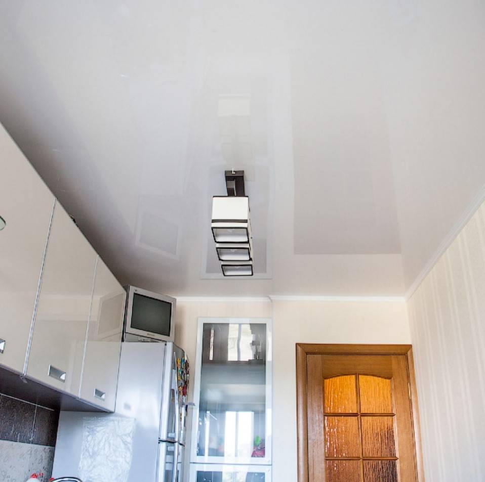 Как видно, натяжной потолок из пленки — практически идеальный вариант для кухни.