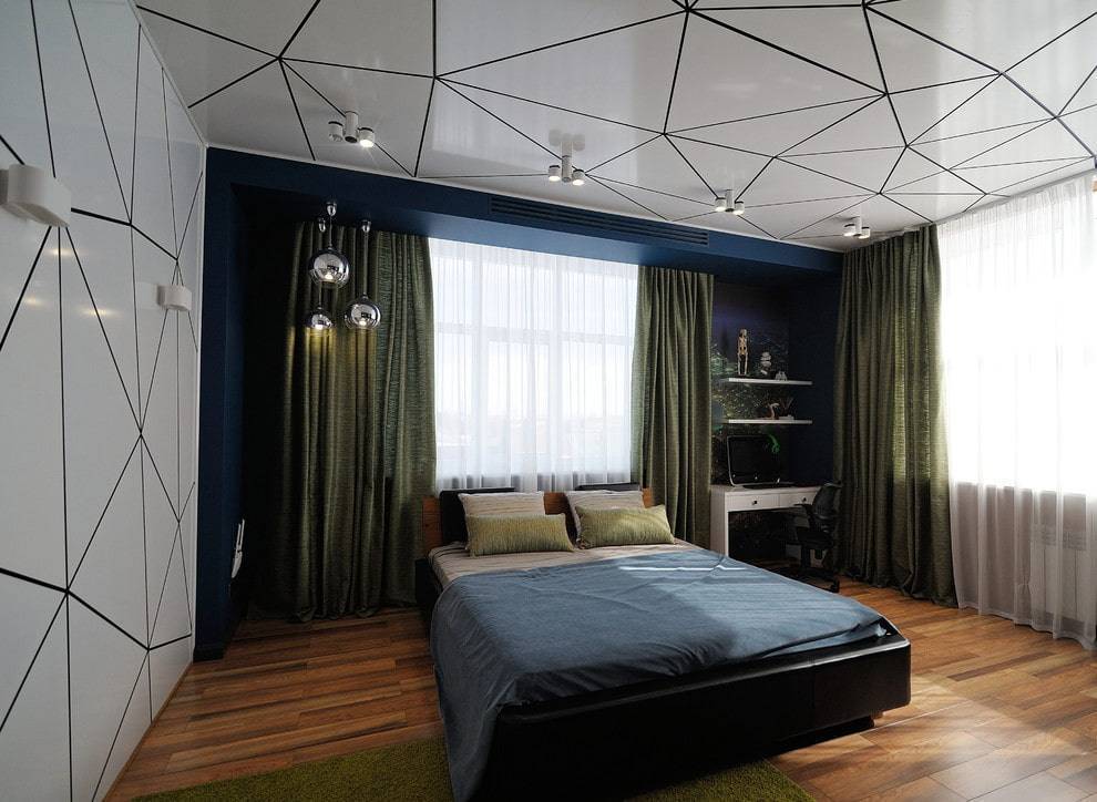 Чтобы создать эффект зеркальной поверхности, выберите глянцевый потолок. Если вы хотите добиться эффекта шероховатости, установите матовую конструкцию. Наиболее часто встречающиеся в комнатах мальчиков цвета – зеленый, синий. Однако вовсе не обязательно останавливаться исключительно на традиционных вариантах. Чтобы добавить в интерьер изюминку, можно остановить выбор на контрастных сочетаниях.