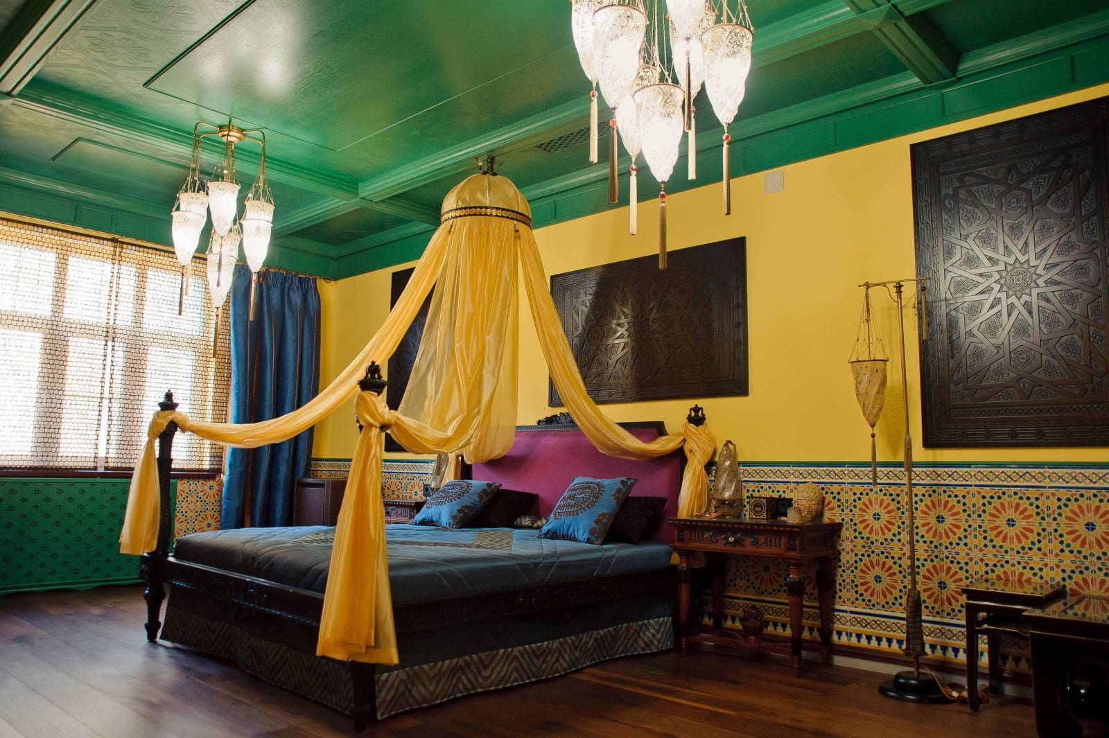 Вызывает ассоциации с морскими глубинами и бескрайним небосводом. Синий цвет делает интерьер более насыщенным и изысканным, и добавляет в него некой магии.