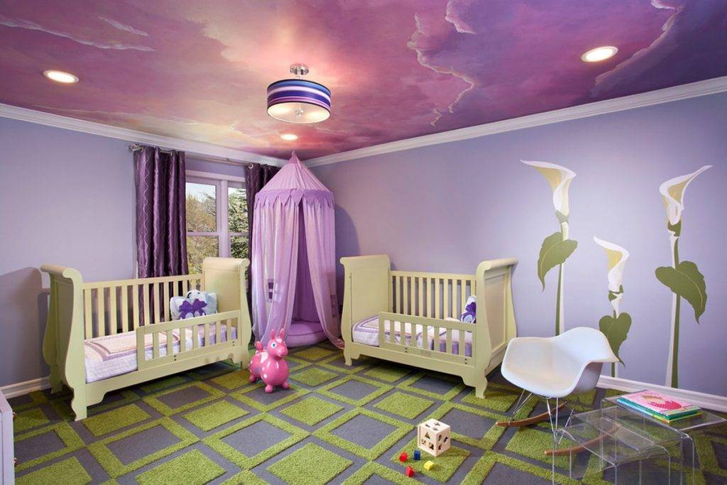 Интерьер детской комнаты с натяжным потолком