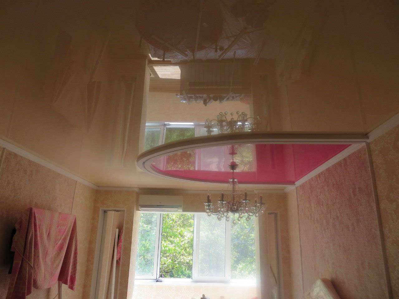 Особенно актуальным такой вид поверхности является для компактных, не высоких спальных комнат. Ему свойственно отражать почти 100% световых лучей. В связи с этим не стоит вешать люстры, обладающие большим диаметром, чтобы не образовалась на потолке полутень.