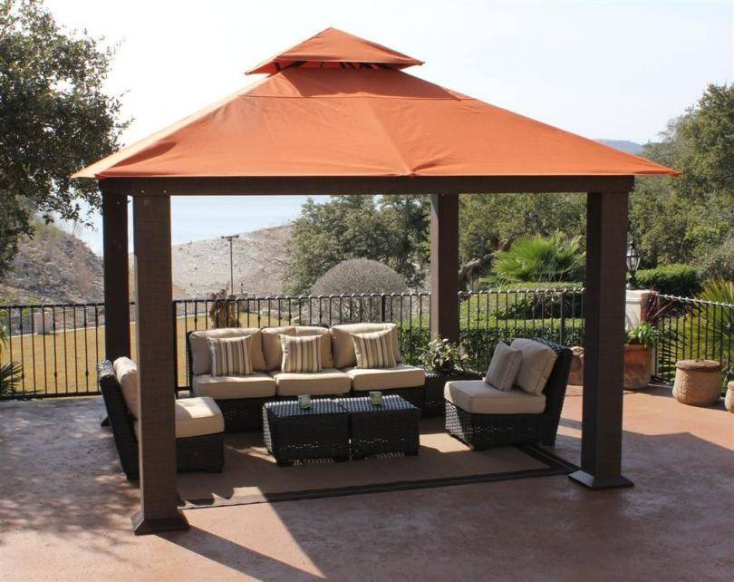 Навес можно декорировать деревянными решетками, а также красивыми коваными элементами. Для украшения легких построек можно использовать красивые растения, виноградную лозу и плетистые растения.