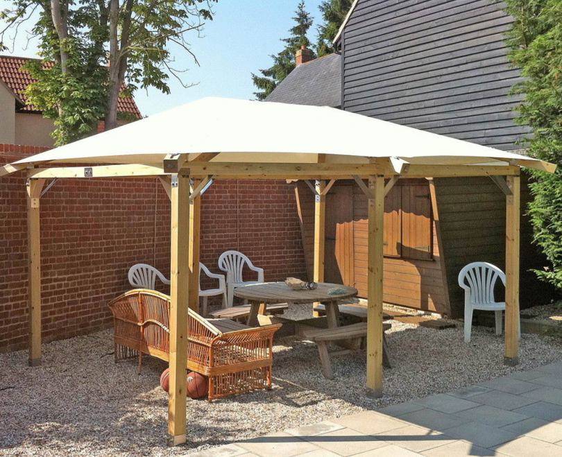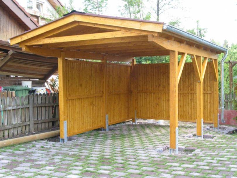 закрытые имеют три стенки. При этом выполняется обшивка с помощью дерева, тентовых тканей или вагонки. В случае необходимости навес можно прикрыть.