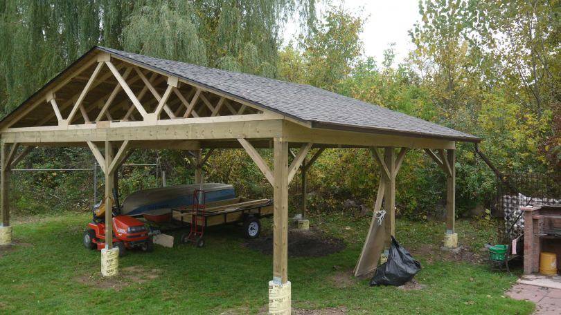 Навес для автомобиляМассивный деревянный навесНавес для авто