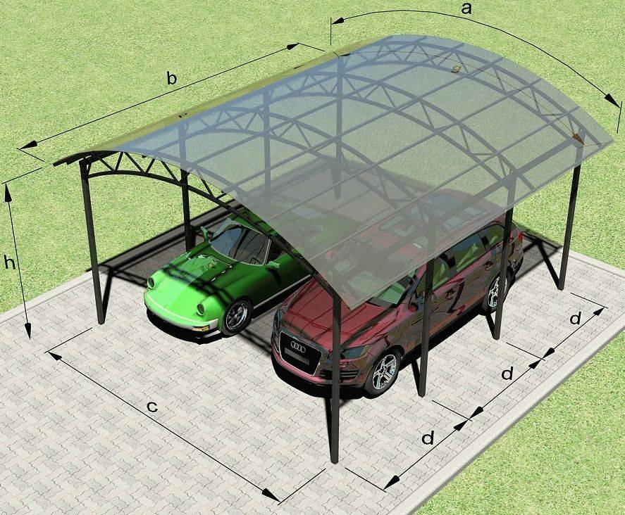 - для парковки двух авто ширина навеса должна рассчитываться на основании более длинной машины;