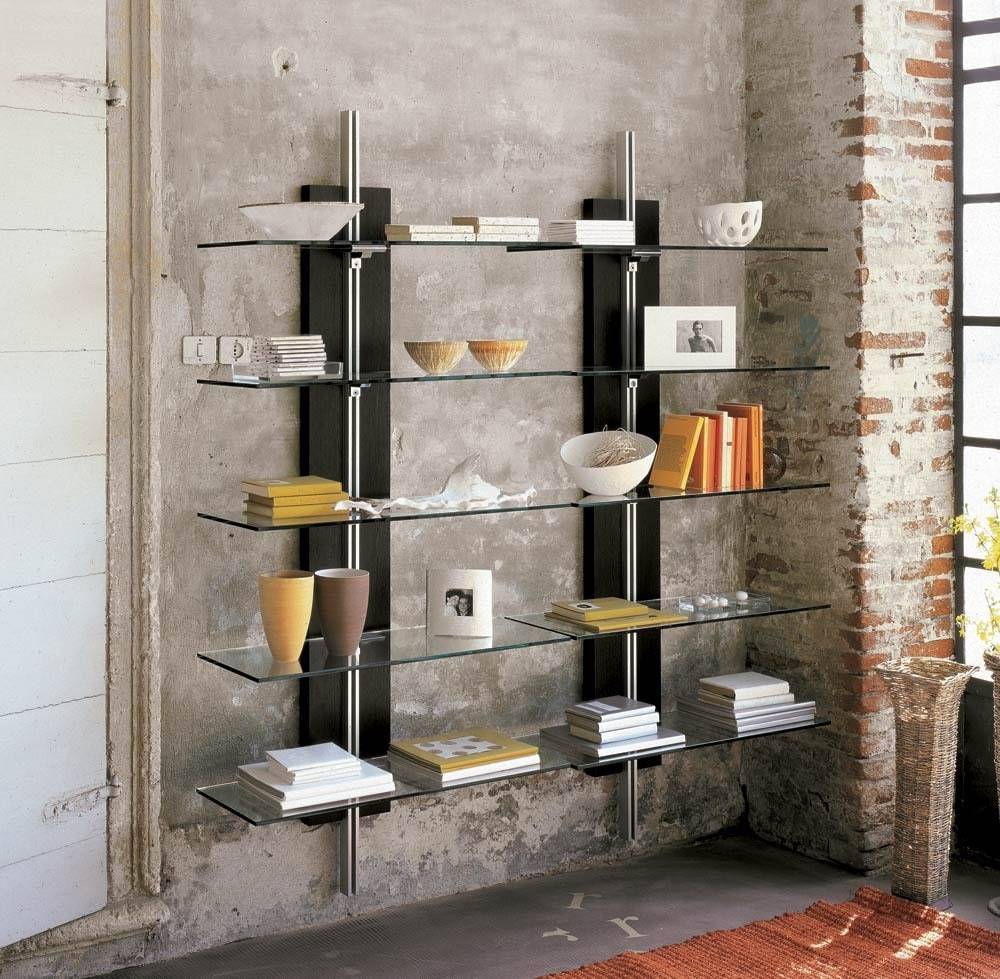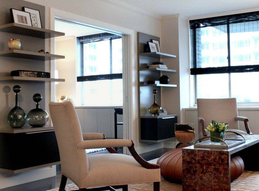 В других случаях монтировать полки следует на невидимые винты. В последнее время в моде конструкции с металлическими или кожаными подвесками. Они выглядят очень интересно и могут придать аранжировке выразительность