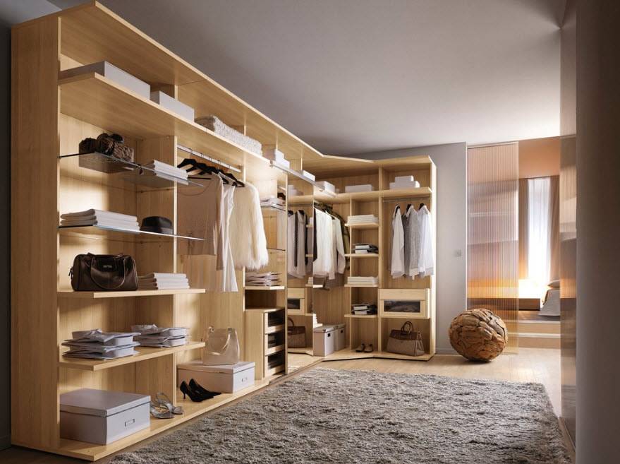 Особенностью данного вида является отсутствие боковых стенок, дна и крыши. То есть эту роль выполняют стены, пол и потолок. За счет этого, угловой шкаф идеально подходит к общему интерьеру.