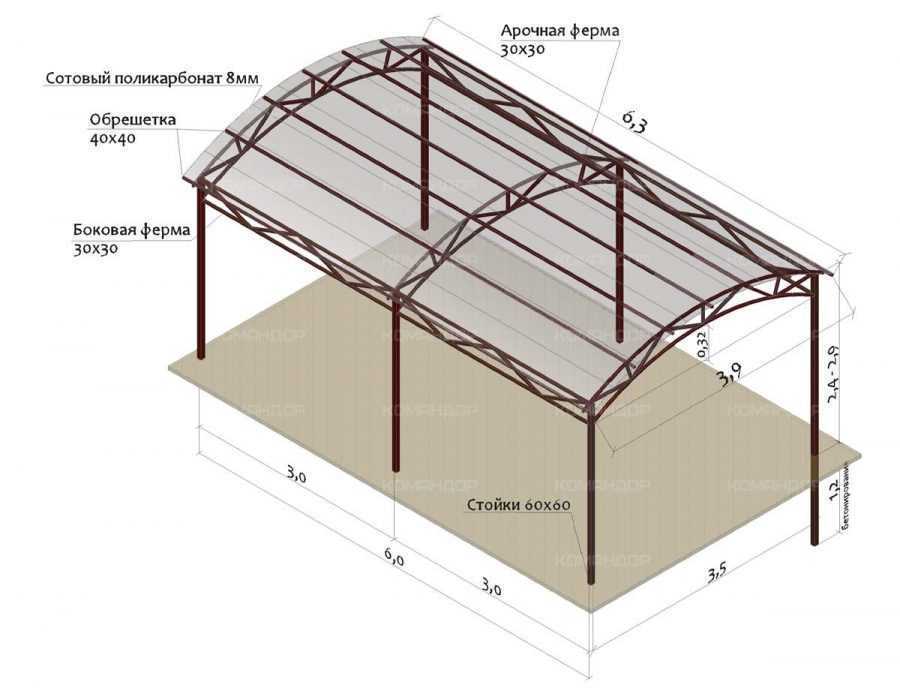 Важно составить проект навеса. Для этого необходимо предварительно замерить периметр участка, рассчитать каркас с учетом вертикального и горизонтального шагов