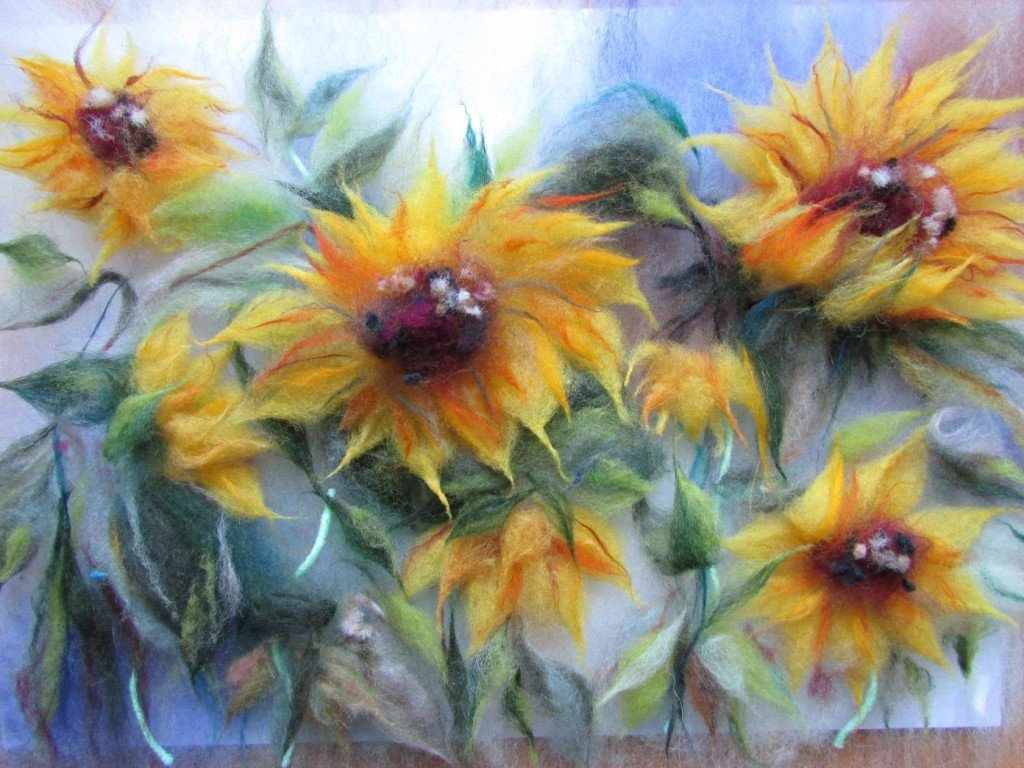 - Мокрое валяние. Картины получаются плоские, как рисованные холсты.