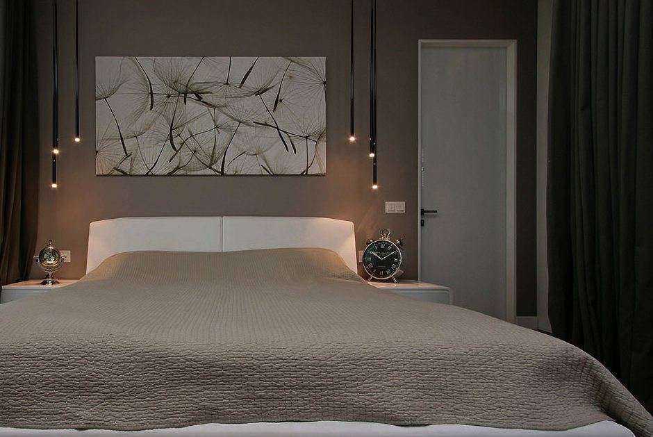 Автономные зоны освещения удобны не только своими функциональными возможностями, но и созданием в случае необходимости особой романтической атмосферы, в которой спальня и ее обитатели так нуждаются. С учетом того, что в центре спальни находится кровать, светильники разнообразят пространство и делают эксклюзивные акценты, избавляя от необходимости добавлять излишне много мебели. С помощью одного только декоративного освещения можно добиться эффекта необычайно роскоши или минималистской выразительности.