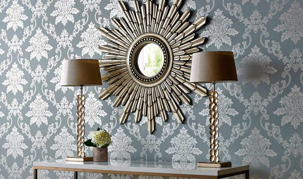 Барокко тоже считается хорошей основой для введения в интерьер обоев дамаск. Там отдельные элементы обоев помещают в дорогие багеты с вензелями и используют, как полноценное украшение стены.