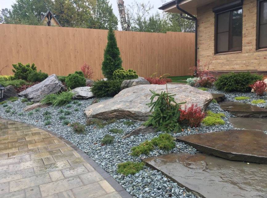 - Планировка участка с выраженным рельефом. Нередко применяется корректировка рельефа.