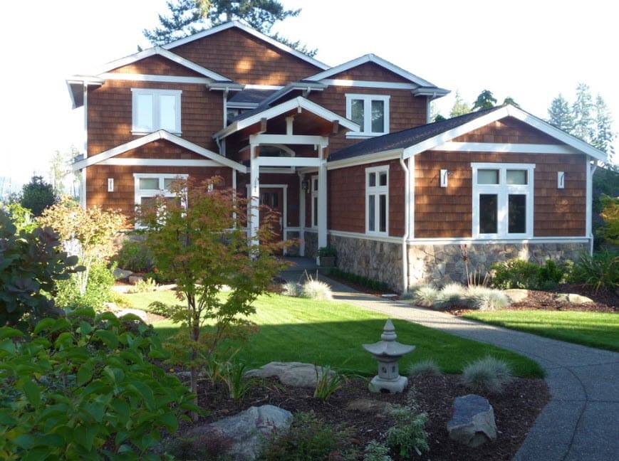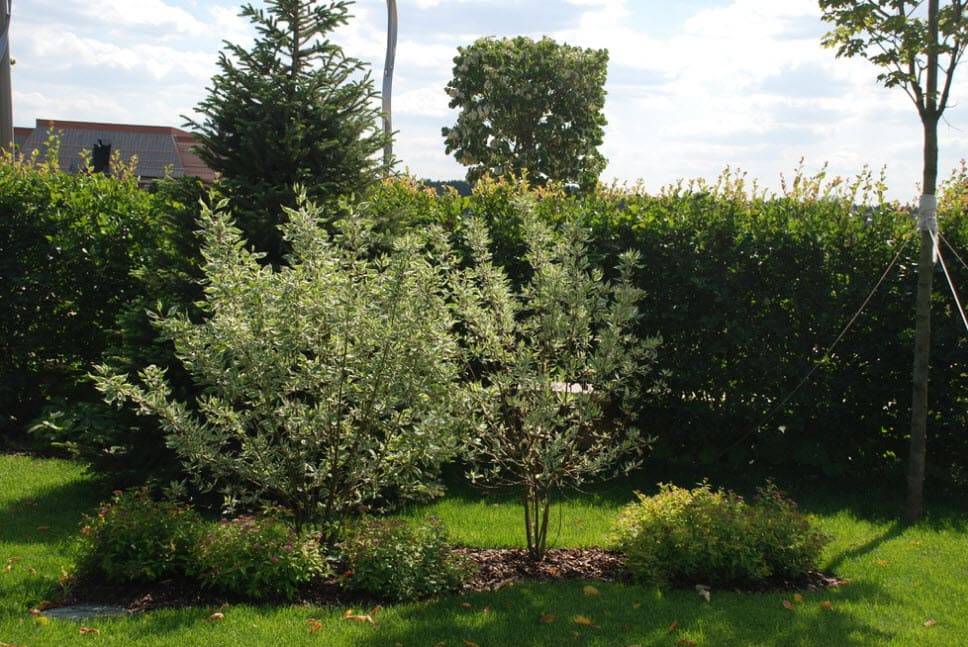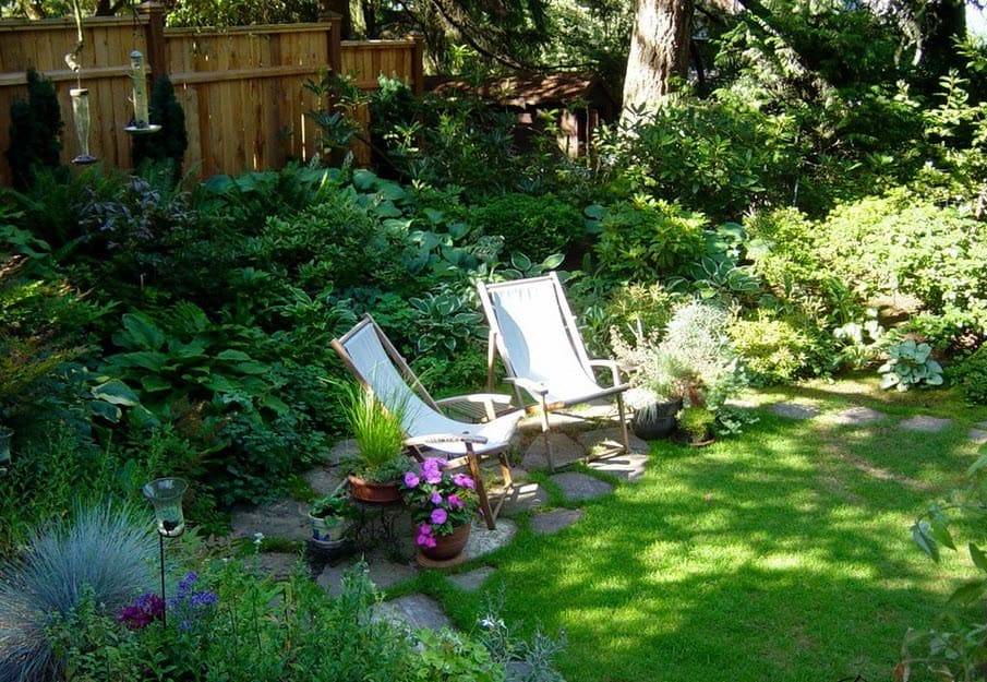 Если на небольшом участке планируется посадка деревьев, то чтобы во дворе не присутствовала лишняя тень, лучше выбрать одно или два дерева с оригинальной формой, у которого яркая листва. Дизайнеры советуют остановить свой выбор на клене, липе или туе. Идеально подойдет хвойник, падуб или падуб.