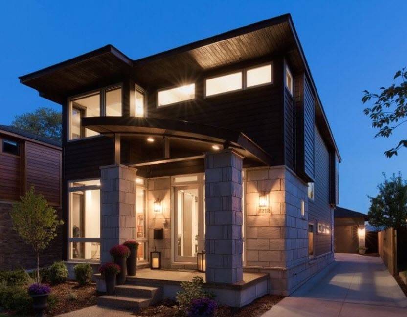 Дом располагают ближе к одному из углов участка, примыкающих к дороге, соблюдая расстояния до красной линии дороги. Гараж или навес для автомобилей лучше расположить с противоположной стороны от центрального входа на участок. Гараж может располагаться в отдельном строении или быть встроенным в основное здание.