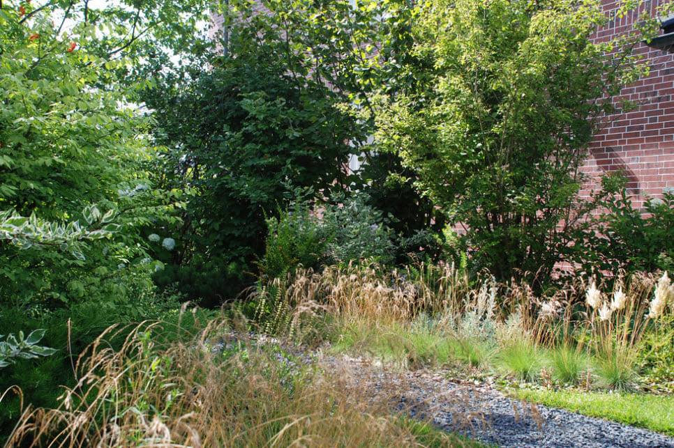 - Планировка участка с переувлажненной почвой. Грамотно проведенный анализ грунта и уровня подземных вод позволит разработать дренаж и ливневые стоки. В противном случае, застоявшаяся вода погубит растения и снизит качество жизни владельцев.