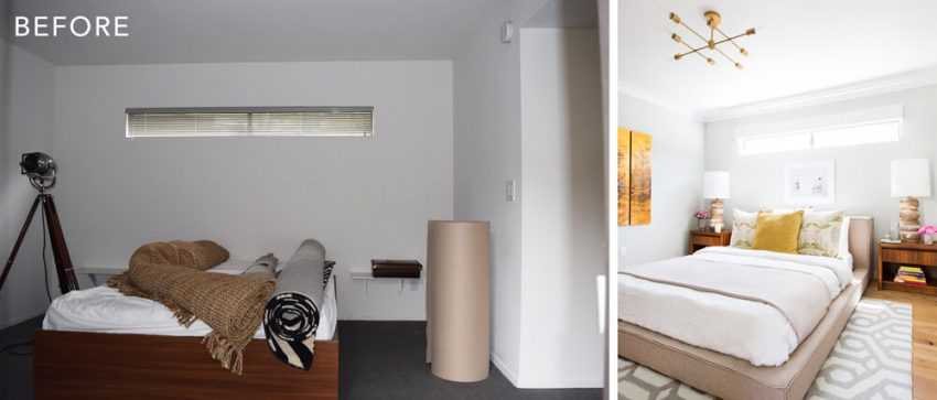 Планируя сделать ремонт спальни своими руками в малогабаритной квартире, следует помнить о правиле симметрии. Этот способ поможет сделать красивый и уютный дизайн интерьера без дополнительных знаний и опыта. Такая комната всегда смотрится выигрышно – нет ощущения перегруженности и неуместности деталей интерьера.
