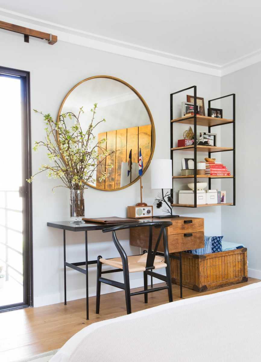Основным элементом декора служит зеркало. Оно может быть закреплено на дверях шкафа или занимать место на стене. Этот предмет поможет визуально увеличить комнату, придать ей больше света. К тому же с помощью зеркальной поверхности хозяйка будет всегда уверена в своей привлекательности.
