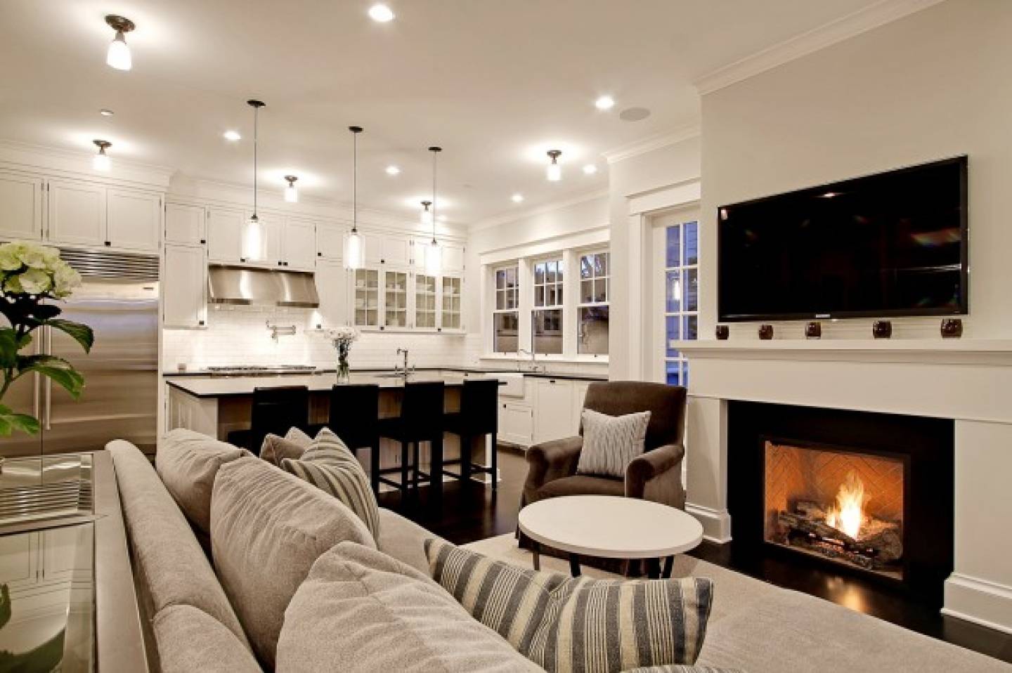 Объединенное пространство кухни и гостиной — прием, пришедший к нам с Запада. На сегодняшний день он настолько популярен, что строительные компании создают квартиры-студии и квартиры с большим помещением кухни, где свободно можно организовать и гостиную зону. Так что такой прием вполне можно назвать признаком современного стиля хозяев.