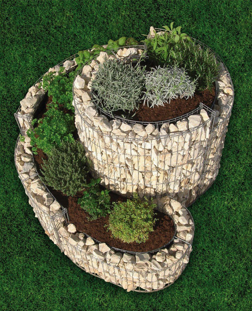 - Природный камень и металл. Сварные кубы из строительной металлической сетки, заполненные галькой, разграничат садовую дорожку и цветник. При установке лишь выравнивают основание, что позволяет менять планировку участка без проведения фундаментальных работ.