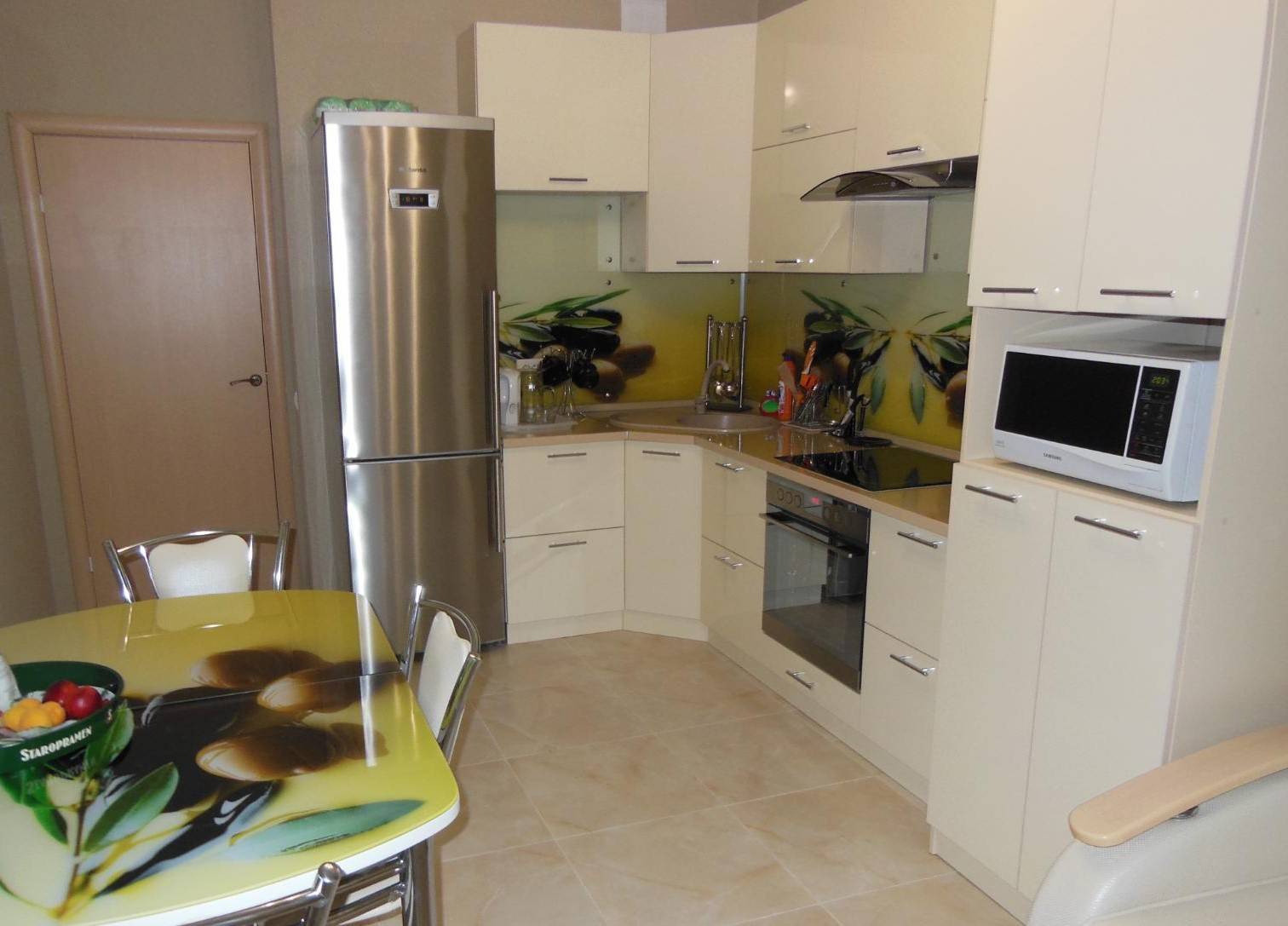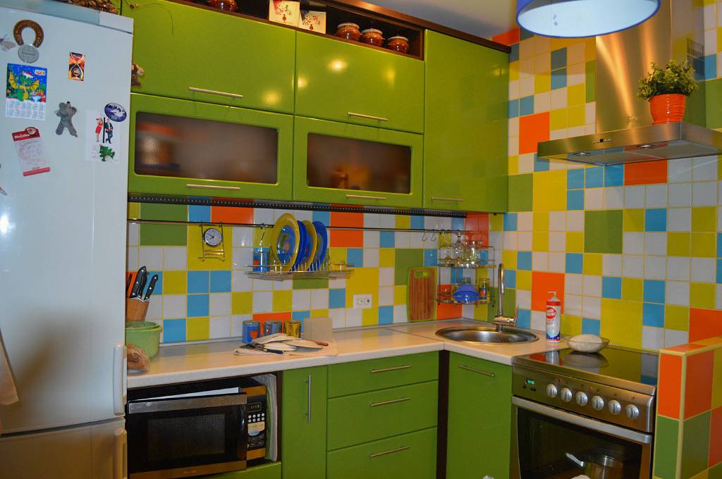 Более яркий оттенок и лакированный кухонный гарнитур соответствуют современным направлениям.