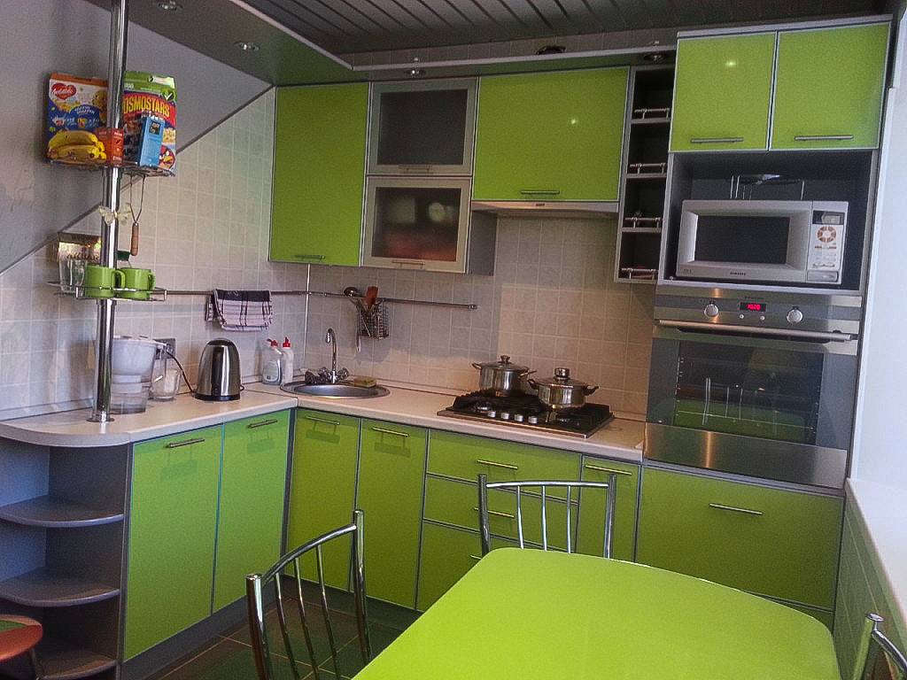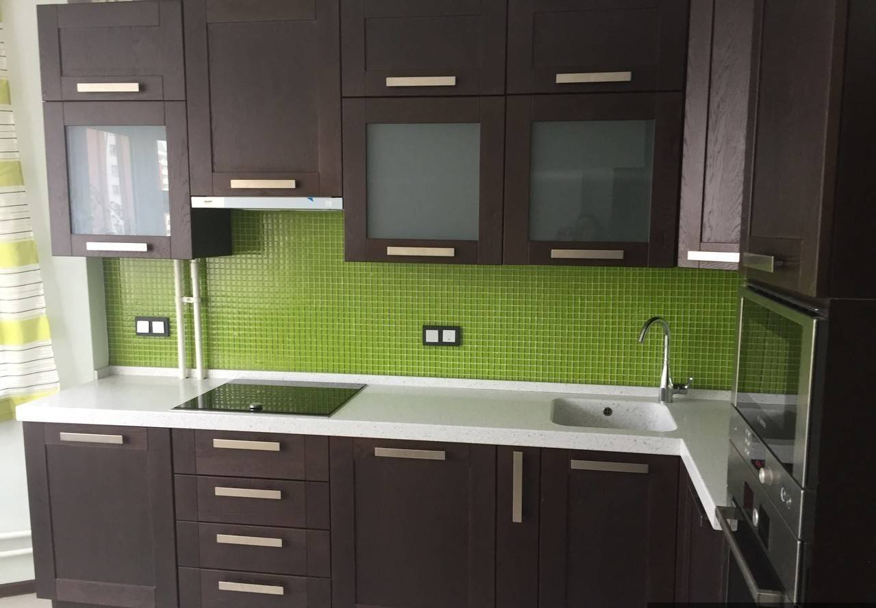 Из сочетаний для небольшой кухни лучше выбрать оливково-белый. Вместо белого также допустимо использование светло-бежевого. Светлые стены и фартук визуально увеличат маленькое помещение.