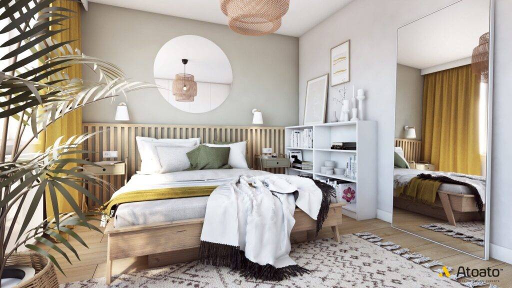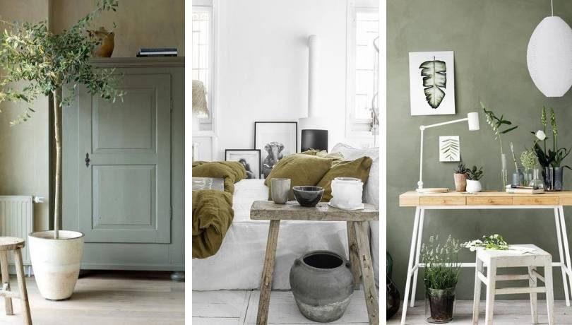 Оливковый цвет способствует релаксации, подсознательно проводится аналогия с природной зеленью. Использование этого оттенка в спальне будет удачным решением.