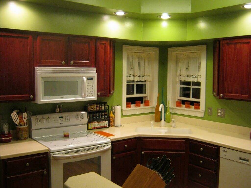 Совет! Если кухня плохо освещена, не стоит выбирать насыщенные оливковые тона для покраски стен, так как помещение станет еще более темным. В данном случае следует отдать предпочтение бежевым и белым оттенкам.
