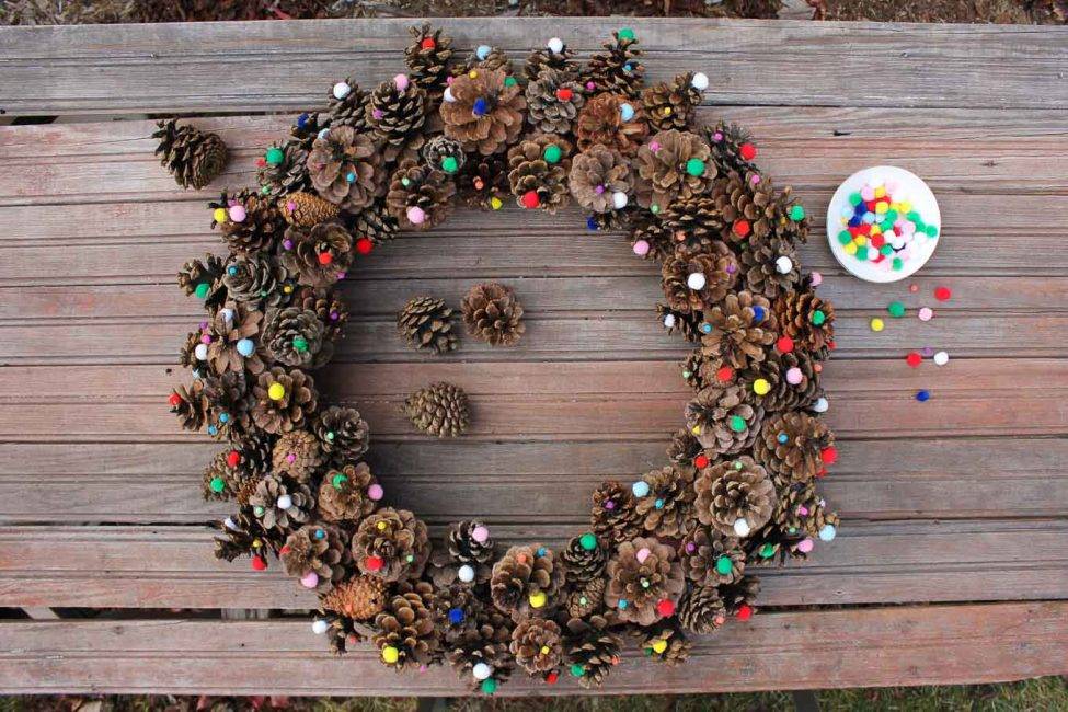 Это могут быть не только игрушки для елки, а и новогодние венки на дверь из шишек, шкатулки, украшения для стен и стола.