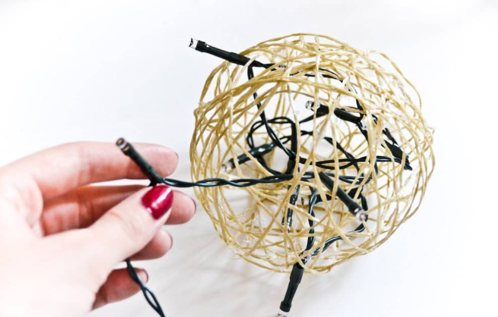 Наматываем веревку вокруг воздушного шарика в произвольном порядке.