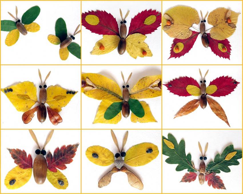 Если ребята собираются впервые работать с природным материалом, то можно предложить им сделать веселых мотыльков.