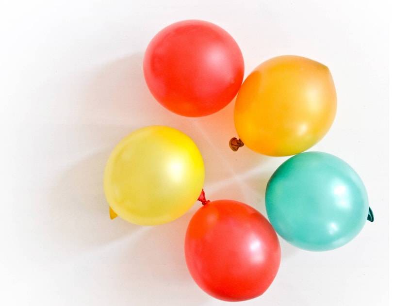 Надуваем несколько воздушных шаров приблизительно одинакового размера. Они не должны быть слишком большими, чтобы поместились в корзинку.