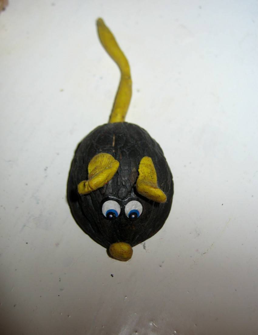 - Приклеиваем голову к туловищу, то есть грецкий орех к шишке.