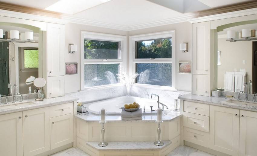 Дизайн угловой ванны зависит в первую очередь от площади помещения. Логично, что место для купания хочется сделать больше, сэкономив на умывальнике и унитазе. Однако разнообразие на рынке позволяет задуматься о выборе наилучшего решения.