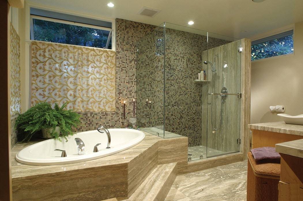 Ванная комната становится истинным образцом искусства дизайна. Необычно выглядят такие емкости, которые монтируются в пол разноуровневого типа. Воплотить такую идею можно далеко не всегда, но и результат удивит вас своим оригинальным исполнением.