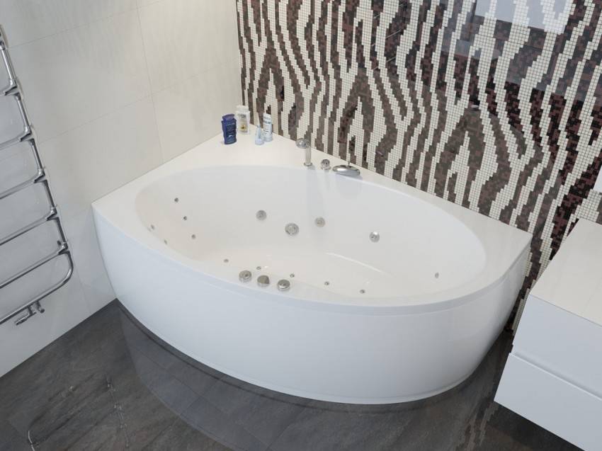 Это бюджетный вариант, красивый по дизайну и легко восстанавливаемый, если нужно избавиться от царапин. К тому же, такая угловая ванна сохраняет тепло и достаточно быстро становится теплой.