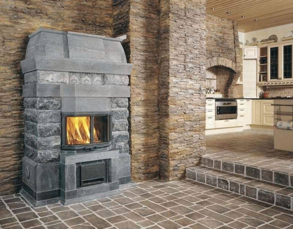 Облицовка натуральным камнем не всегда подходит для декорирования каминов. Современные технологии позволяют использовать материалы, превосходящие натуральные камни по теплоотдаче.