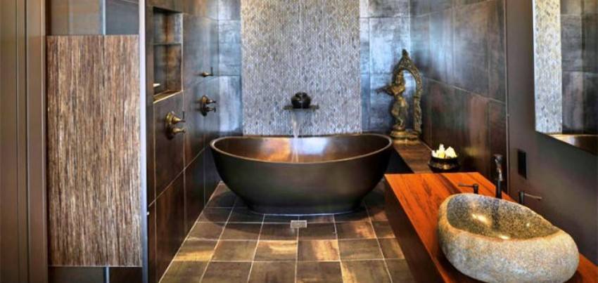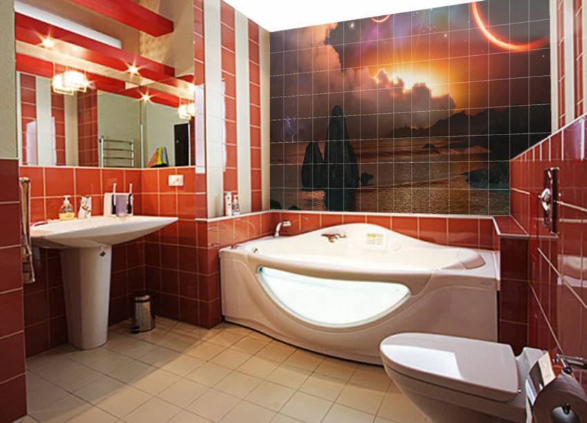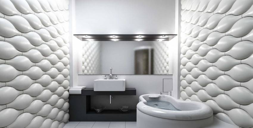 Отделать ванну плиткой, да к тому же однотонной? Считайте, что это вчерашний век. Если все-таки останавливаться на керамической плитке, то пусть это будут интересные принты или 3-D эффект.