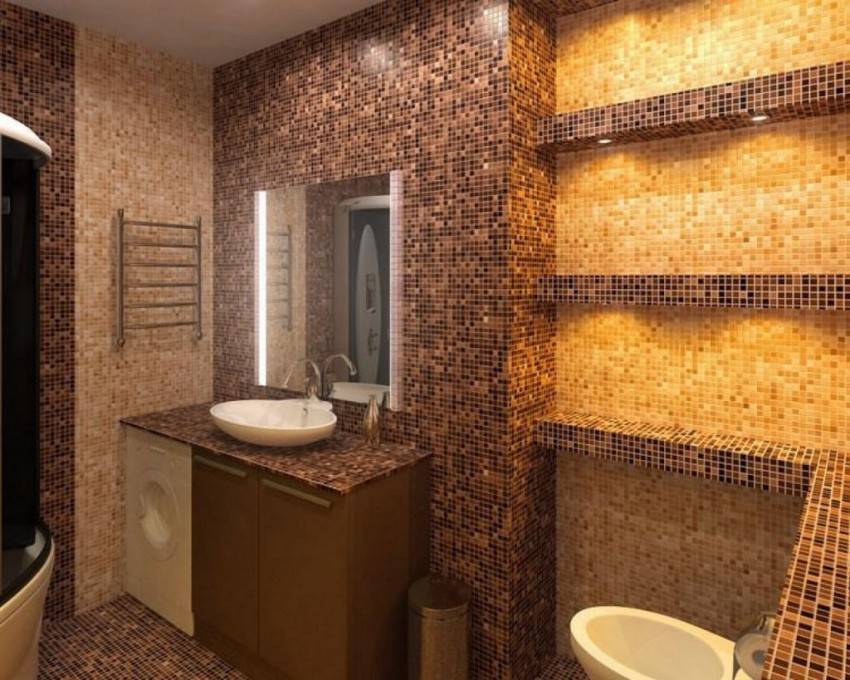 Но мозаика в умеренных количествах отлично подойдет для туалета, где применяется какой-то конкретный вид отделки.