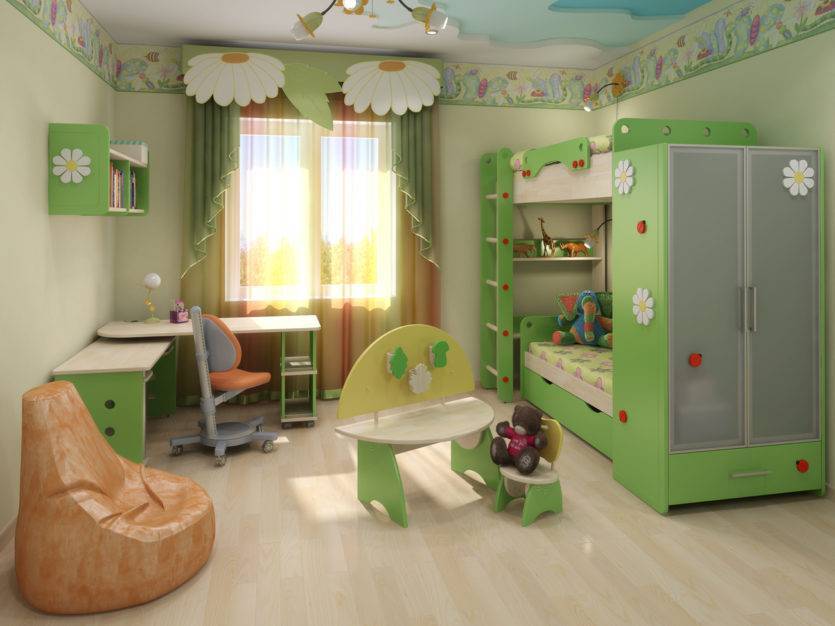 Прежде, чем выбрать дизайн детской для разнополых детей, нужно помнить, что подросткам и малышам нужно больше солнечного света.