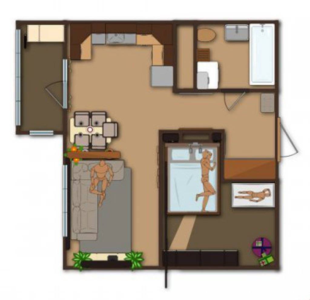 На схеме однокомнатной квартиры видно место для старшеклассника — это прямо полноценная комната