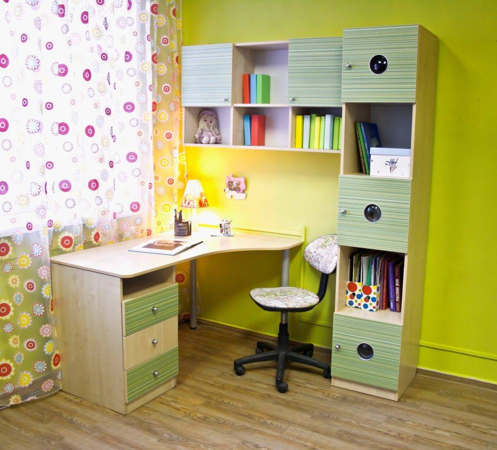Школьнику нужна не только кровать, но и шкаф для вещей, а вместо столика — полноценный эргономичный письменный стол с таким же креслом, чтобы избежать искривления позвоночника от долгих занятий, а вместо полок для игрушек — шкаф для игрушек, учебников, личных книг и канцелярских принадлежностей. Это невероятно усложняет задачу.