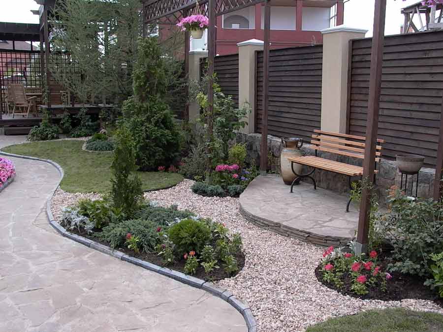 Как видно из этого примера, даже на небольшой площади размещается достаточное количество элементов ландшафтного дизайна.