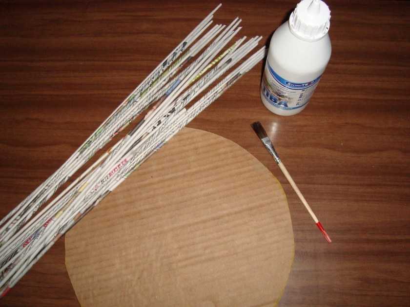 После скручивания трубочки готовы к плетению. Если их окрасить до начала работ, изделие будет выглядеть опрятнее, чем при окрашивании готового. Краска подойдет любая. Можно взять даже гуашь, разбавив ее смесью воды и клея ПВА. По окончании поделку рекомендуется покрыть любым лаком по дереву.