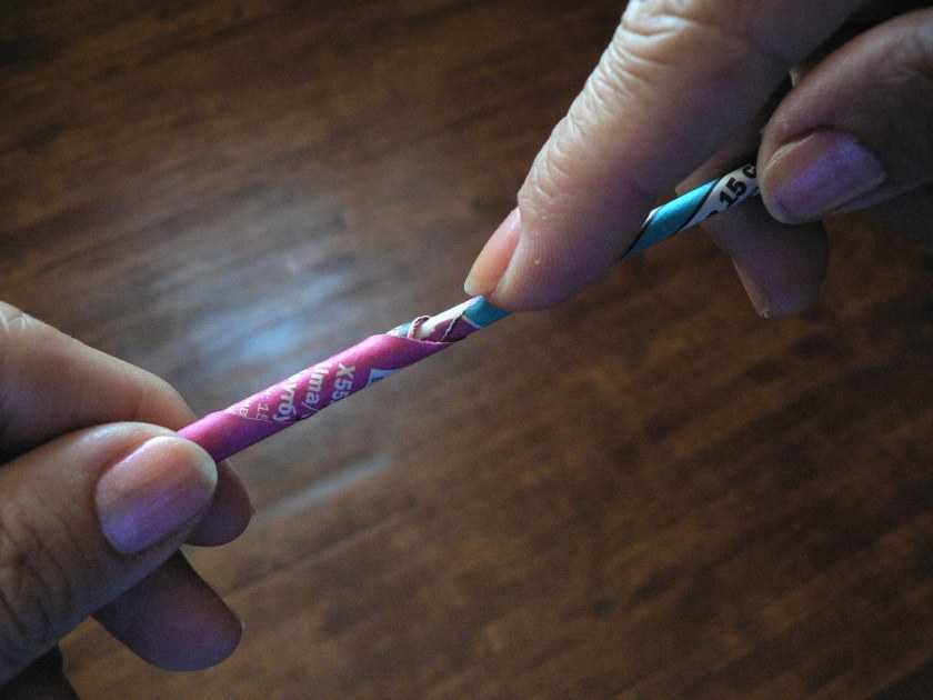- Если трубочка заканчивается, ее можно удлинить: в широкий кончик вставляем узкий, для прочности, капнув туда клея.