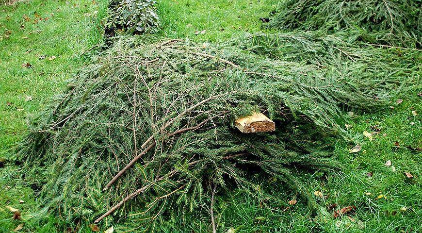 Мне пришлось учиться укрывать плетистые розы, когда в продаже еще не было никаких готовых укрывных материалов. Зато вокруг наших дач был прекрасный смешанный лес, так что ежегодно в сентябре-октябре на участок свозился лапник, с помощью которого и делалось укрытие.