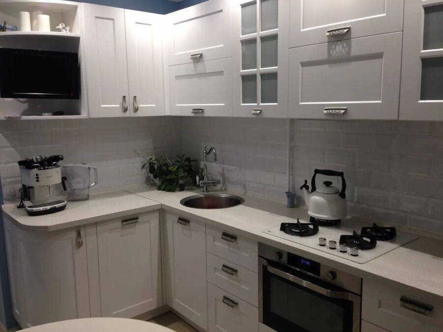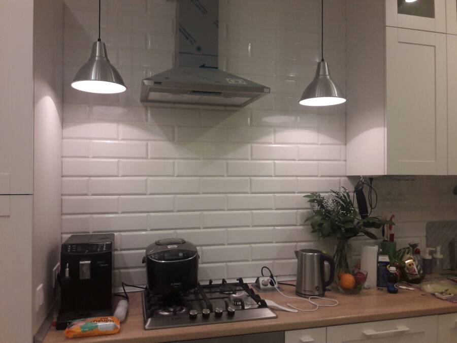- Кухонный фартук из белой плитки считается классическим, но по отзывам владельцев признан довольно прихотливым в уходе.