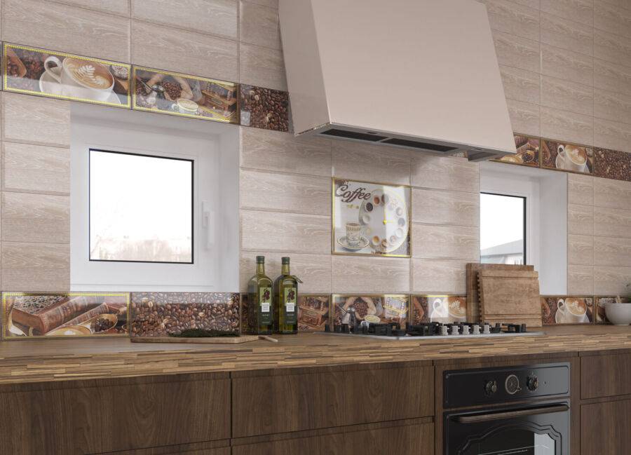 Отдельного внимания заслуживает кухонная плитка. Укладка керамической плитки – процесс довольно сложный. Но подобрать декоративные детали под бежевую, пастельную или нейтральную плитку можно очень просто.