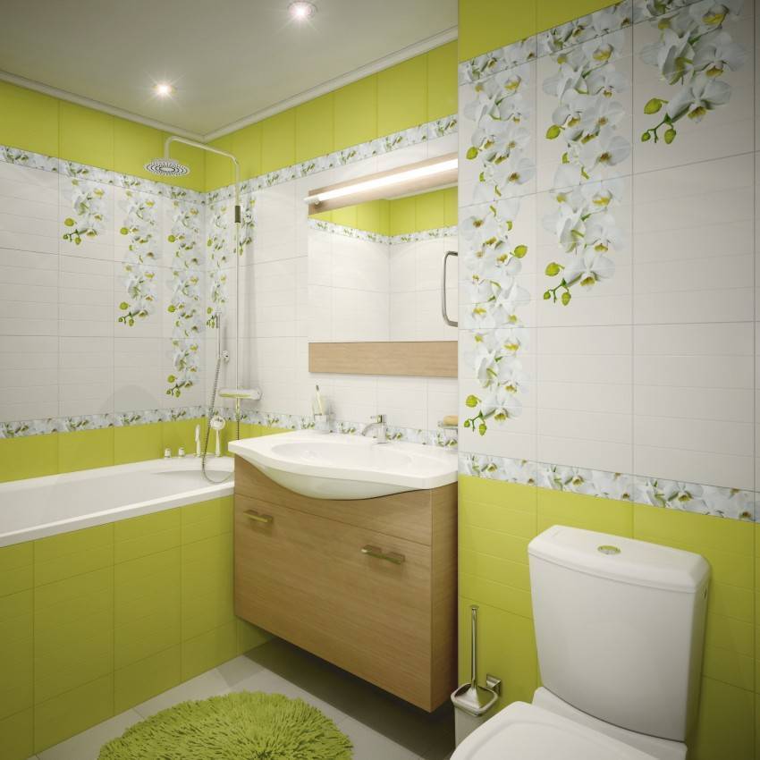 - Зеленый цвет плитки может стать основой для реализации эко-дизайна. Этот цвет отличается своей умиротворенностью и способностью формирования по-настоящему комфортной атмосферы внутри комнаты.