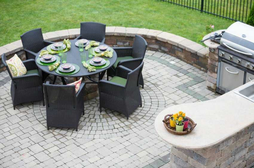 Даже обычная форма плитки или брусчатки в форме кирпича может быть использована для создания различных рисунков. Для этого достаточно подобрать интересную схему и закупить материал соответствующих расцветок. Благодаря этому вы сможете улучшить эстетичность покрытия и даже поддержать стиль, в котором выполнен дизайн вашего загородного участка.